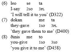 Cappadocian pronouns “float.” They either attach to the verb or they attach to some element that appears earlier in the clause. Janse argues that in order to understand the distribution of clitic pronouns, we must distinguish between syntactic constraints and discourse constraints.