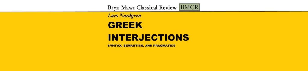 I could have sworn that I had mentioned Lars Nordgren’s book, Greek Interjections Syntax, Semantics and Pragmatics at some point before, but apparently not. I can’t find the post. In any case, his book received a detailed review in the latest issue of the Bryn Mawr Classical Review by Coulter George: