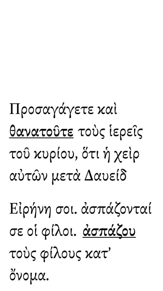 “Turn and kill the priests of the Lord, because their hand also is with David (LXX 1 Kingdoms 22:17). - Εἰρήνη σοι. ἀσπάζονταί σε οἱ φίλοι. ἀσπάζου τοὺς φίλους κατʼ ὄνομα.